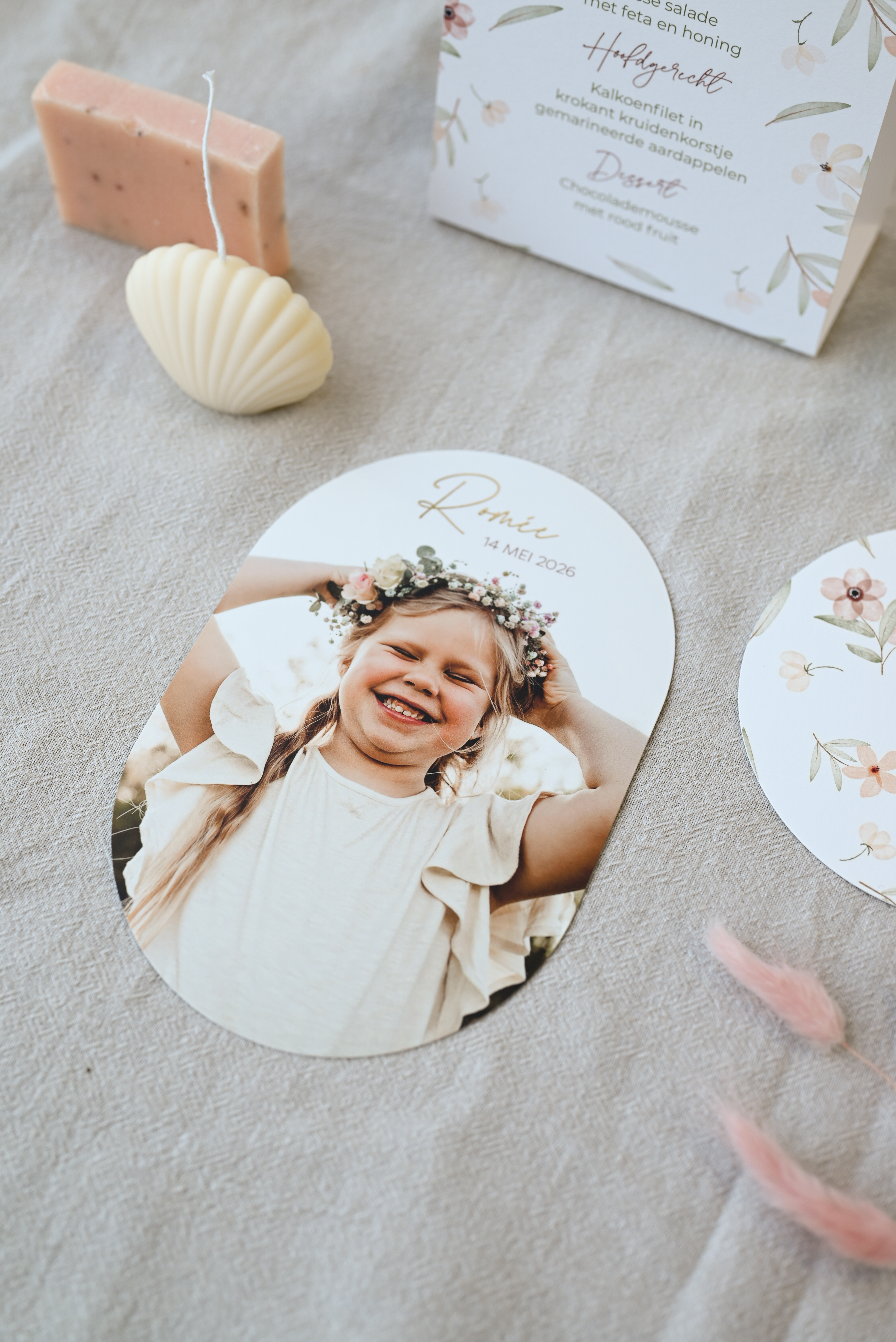 Op zoek naar een uitnodiging voor communie of een stijlvol kaartje voor het lentefeest van je kind? Ik maak voor jou een uniek ontwerp op maat, inclusief bijpassende communiebedankjes die perfect passen in het geheel.