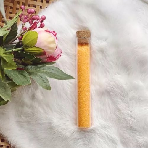 Het scrubzout heeft een korrelgrootte : +/- 1 mm, een korrel die perfect in de hand blijft wanneer het uit het potje wordt gehaald en ook gemakkelijk smelt bij gebruik.